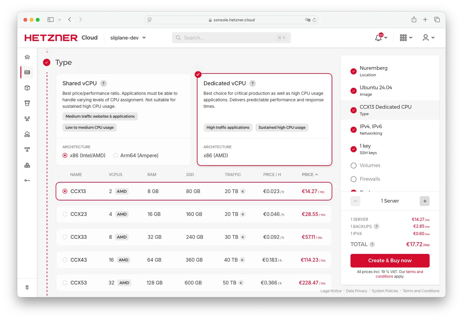 | Hetzner CCX13 | €14.27 |